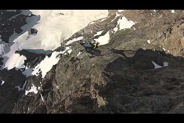 Climbing mountains is great fun, but not as much fun as it looks like these guys were having when they jumped off the Doigt de Dieu on the southern slopes of the edges of the Meije, and flew back down to earth...!